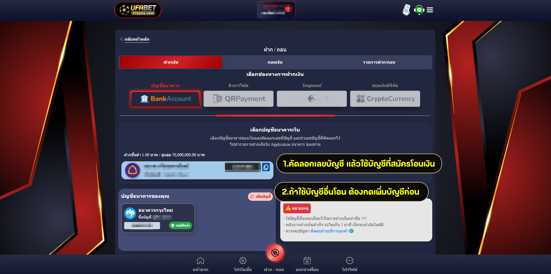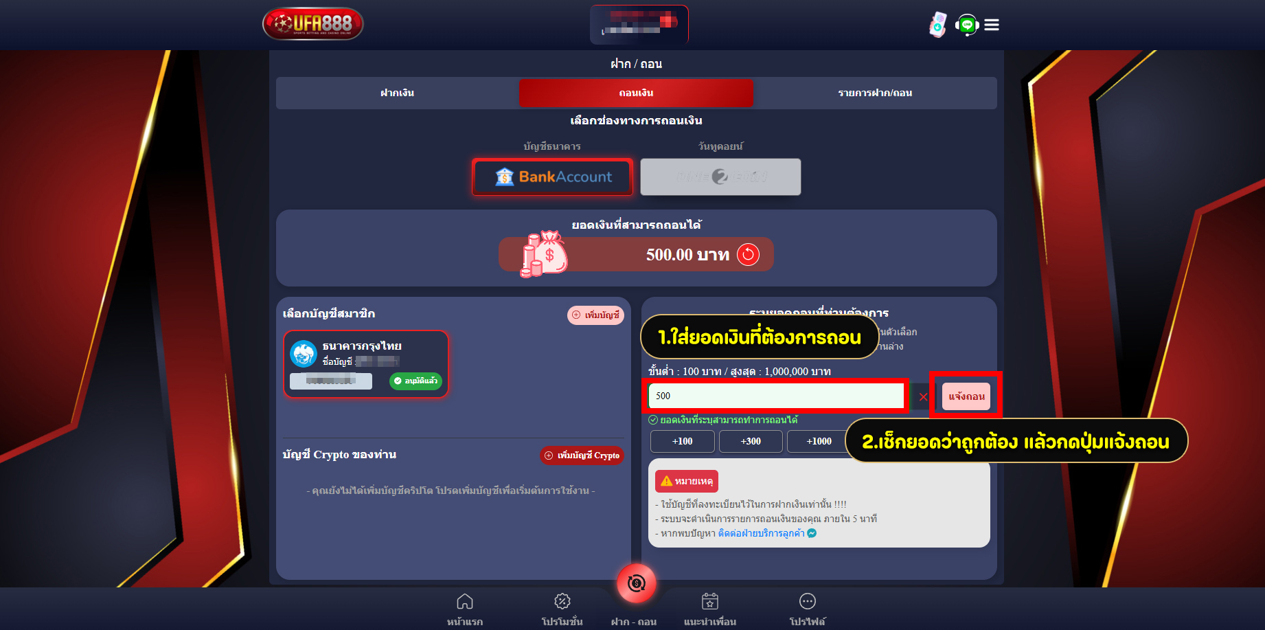 ขั้นตอนการแจ้งถอน ยูฟ่าเบท888