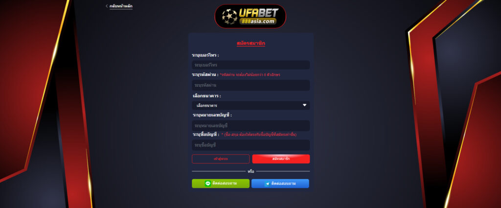 สมัครสมาชิกยูฟ่า เป็นการสมัครสมาชิกเว็บพนันออนไลน์ ที่สมัครง่ายที่สุดในปี 2026 และต้องการเว็บที่เป็น เว็บตรง ปลอดภัย เล่นแล้วได้เงินจริง ufabet888asia.com คือคำตอบที่ดีที่สุด เพราะเราเป็นเว็บ พนันออนไลน์อันดับ 1 ที่รวมครบทั้ง แทงบอล แทงบอลออนไลน์ คาสิโนสด บาคาร่าออนไลน์ สล็อตเว็บตรง พร้อมระบบ ฝากถอนออโต้ ที่เร็วที่สุด